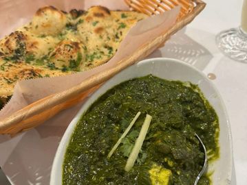 Cottage cheese and fresh methi in a rich green gravy, served with garlic naan